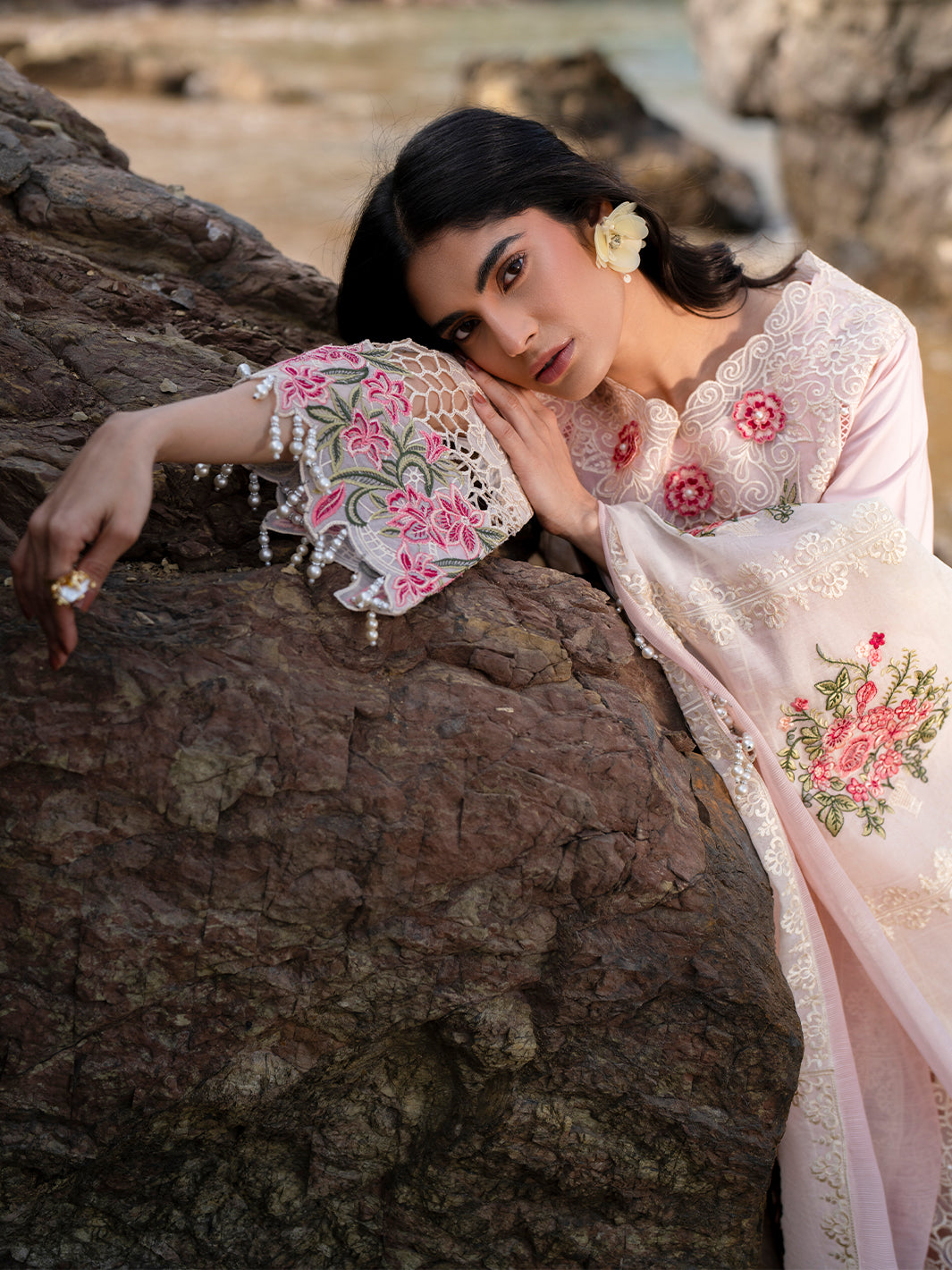 ELAF-3PC LAWN LASERCUTWORK EMBROIDERED SHIRT WITH KHAADI NET EMBROIDERED DUPATTA AND TROUSER -WAC-5780