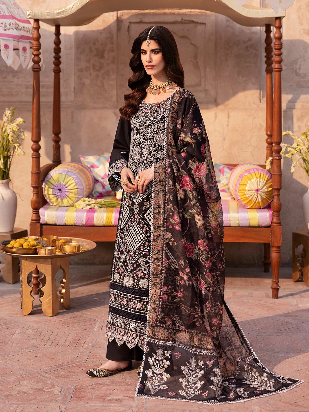 RANG RASIYA-3PC LAWN LASERCUTWORK EMBROIDERED SHIRT WITH KHAADI NET EMBROIDERED DUPATTA AND TROUSER -WAC-5769