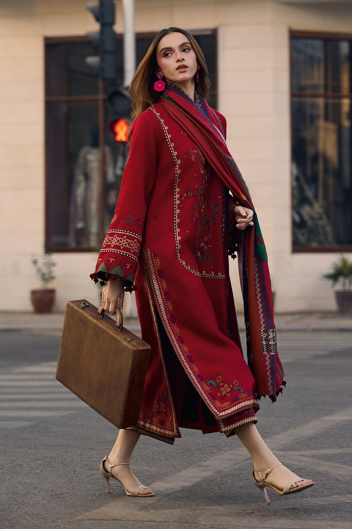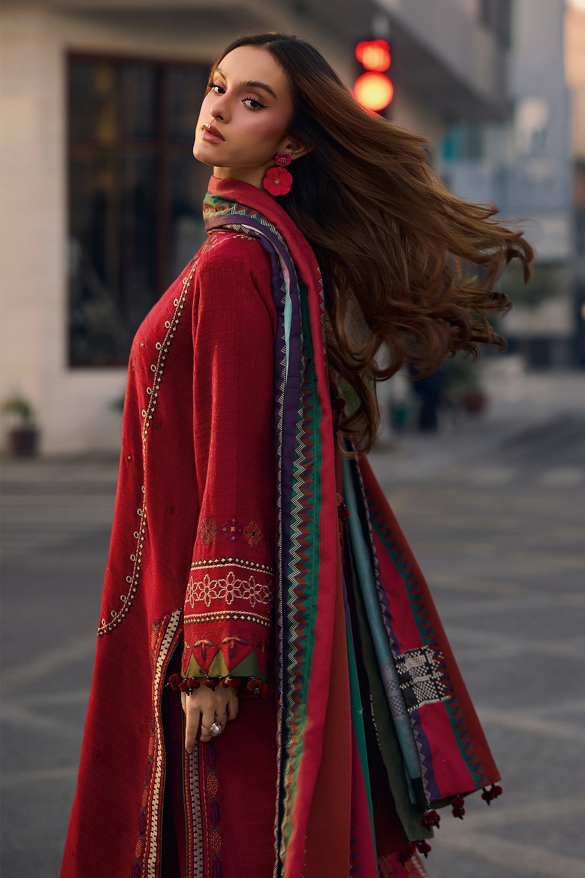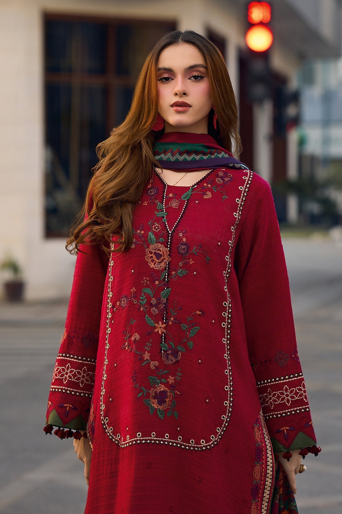 CRIMSON-3PC LAWN CHIKAANKARI EMBROIDERED SHIRT WITH CHIFOON PRINTED EMB DUPATTA AND EMB TROUSER-WAC-5705