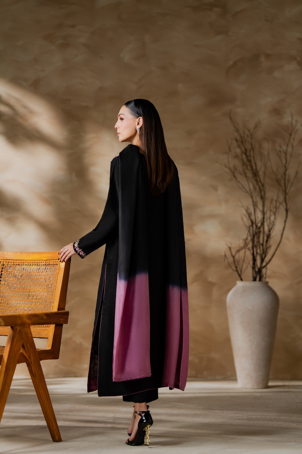 VINTAGE-3PC LAWN EMBROIDERED SHIRT WITH CHIFFON TYE&DYE DUPATTA AND TROUSER-WAC-5768