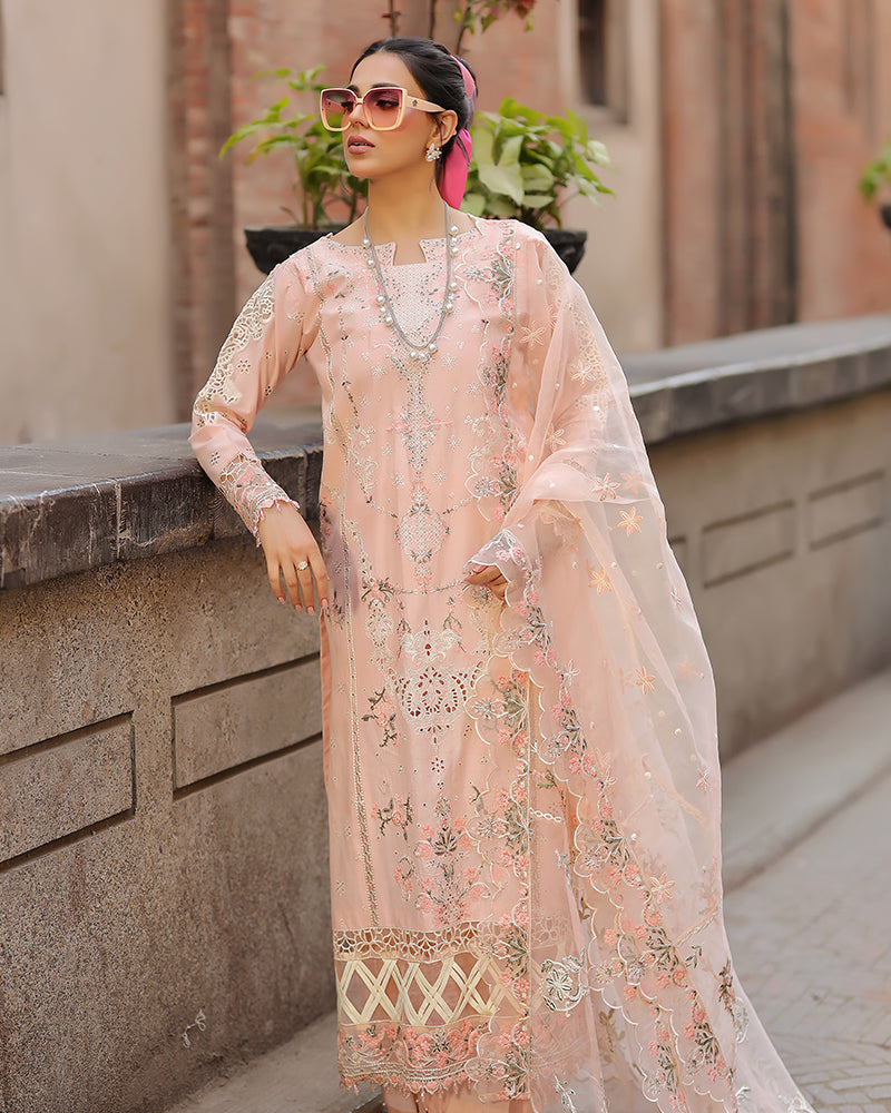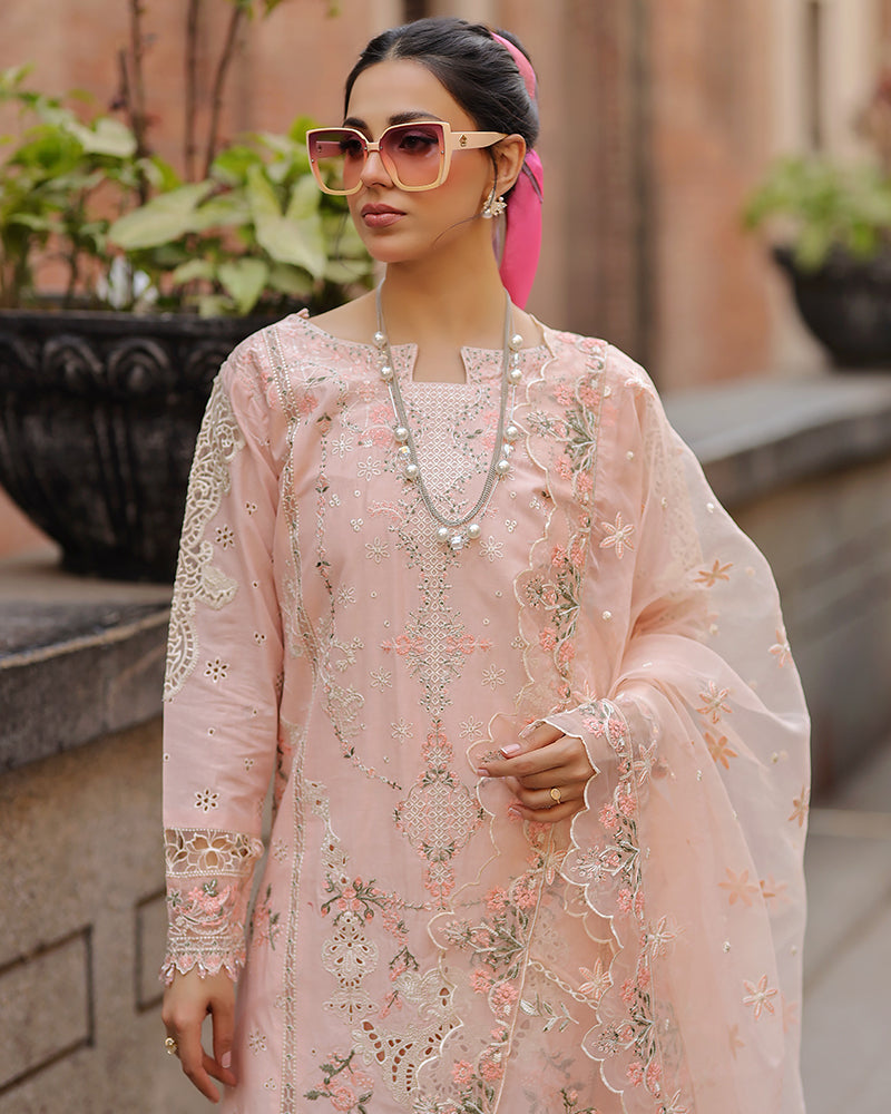 JADE-3PC LAWN EMBROIDERED SHIRT WITH ORGANZA EMBROIDERED DUPATTA AND TROUSER -WAC-