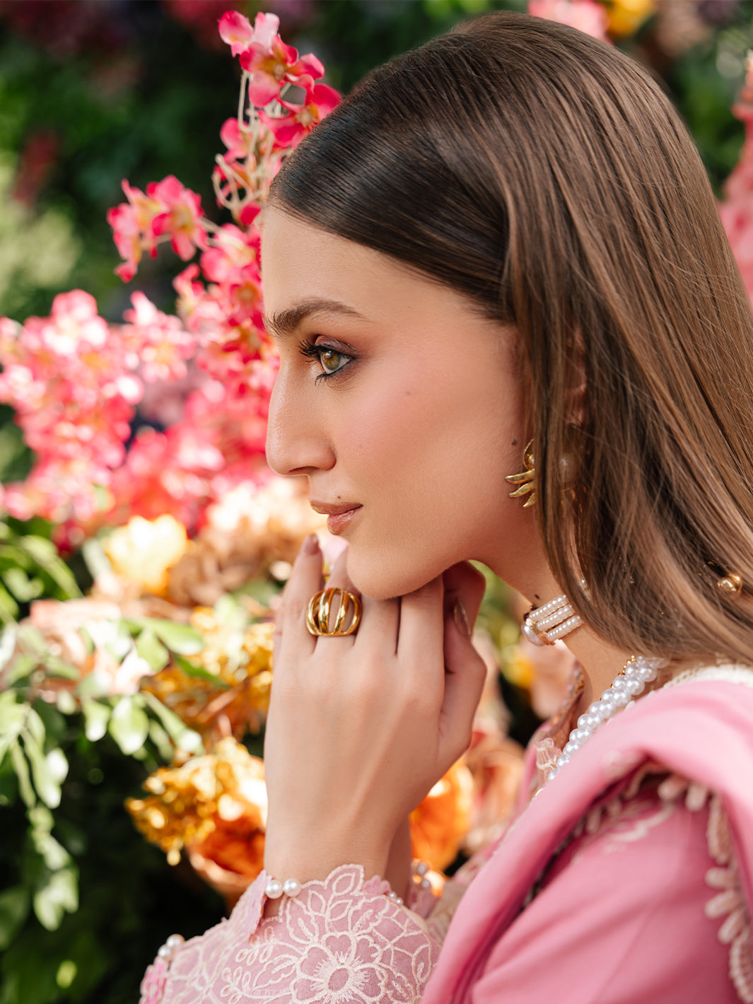 ETHNC-3PC LAWN SEQUIN EMBROIDERED SHIRT WITH ORGANZA EMBROIDERED DUPATTA AND TROUSER-WAC-5635